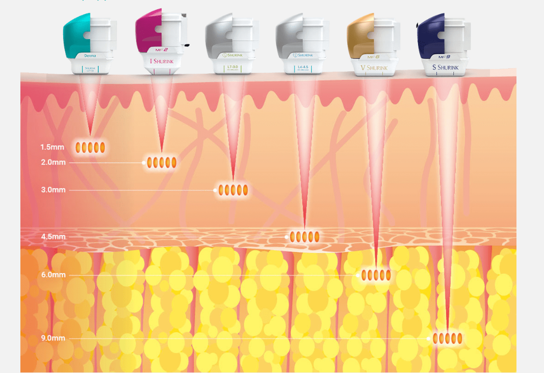 Using 6mm and 9mm tips, it targets the deep dermis, subcutaneous fat layer, and fibrous tissues, delivering focused heat to create multiple micro-coagulation zones. These treated areas stimulate skin regeneration and recovery, gradually tightening the skin and improving elasticity for a firmer, smoother body.